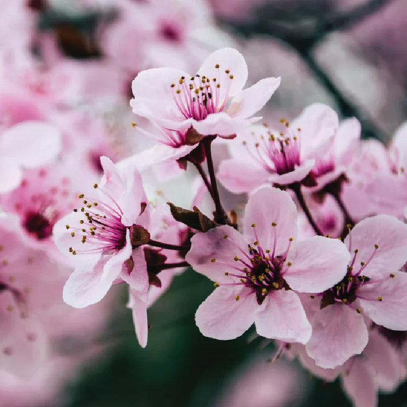 Cherry blossom has a light, airy, and subtly sweet floral scent with hints of fresh fruit and soft powdery undertones. It’s delicate, refreshing, and slightly romantic, evoking the feeling of springtime in full bloom.