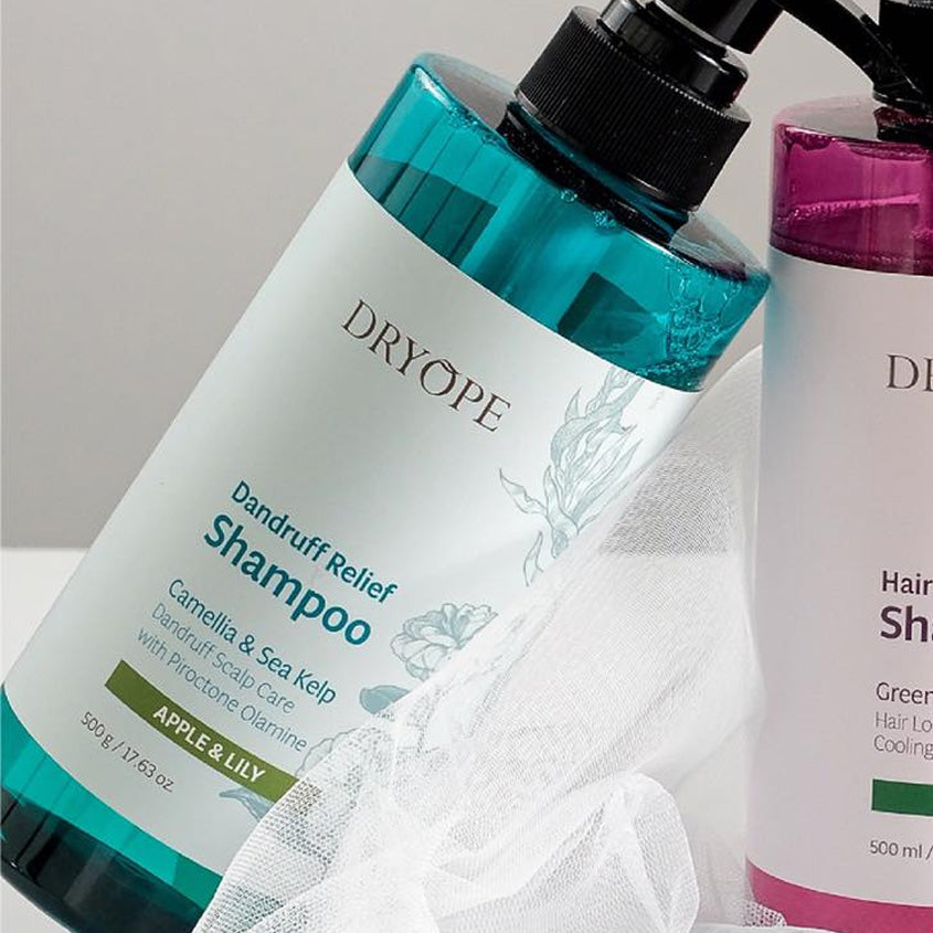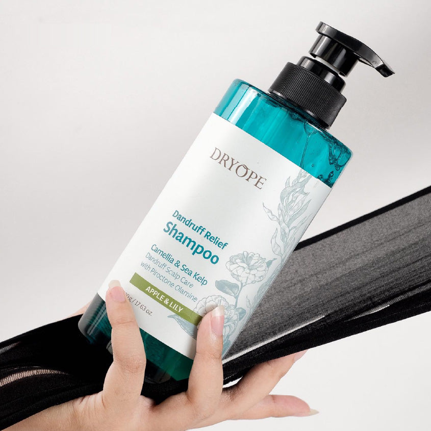 The DRYOPE Dandruff Relief Shampoo - Apple & Lily is a specialized shampoo formulated to effectively address dandruff while providing a refreshing and soothing experience for both the scalp and hair.