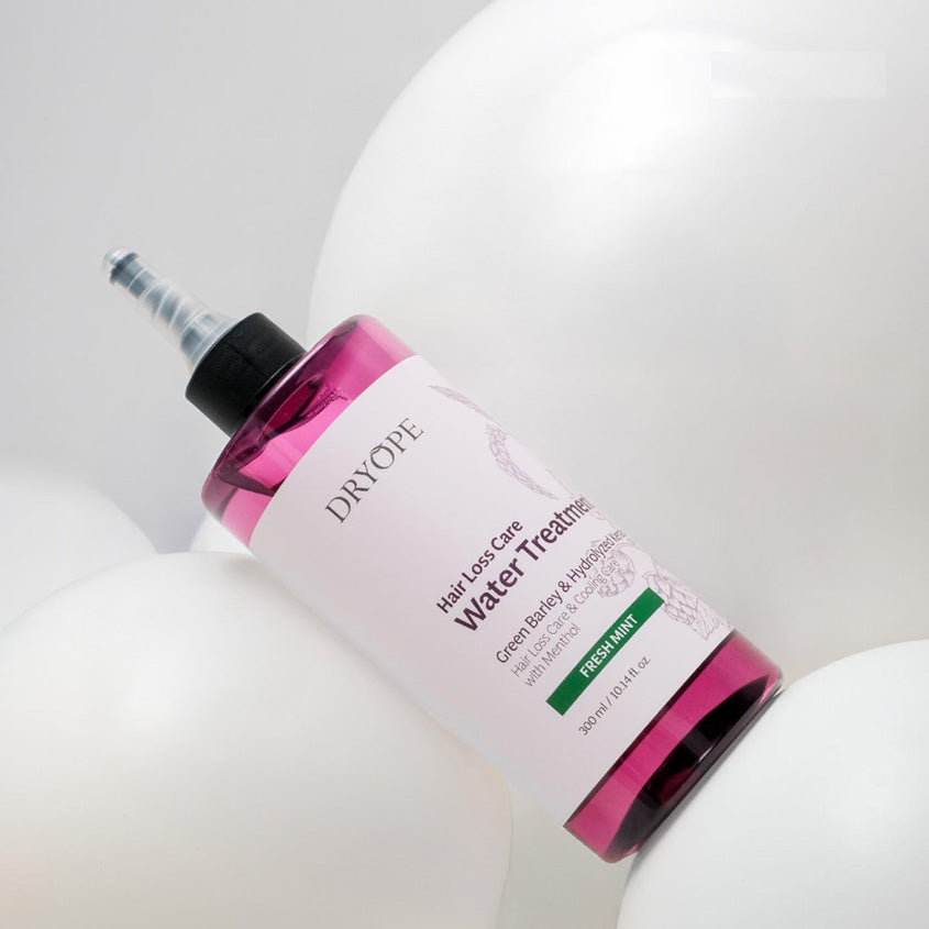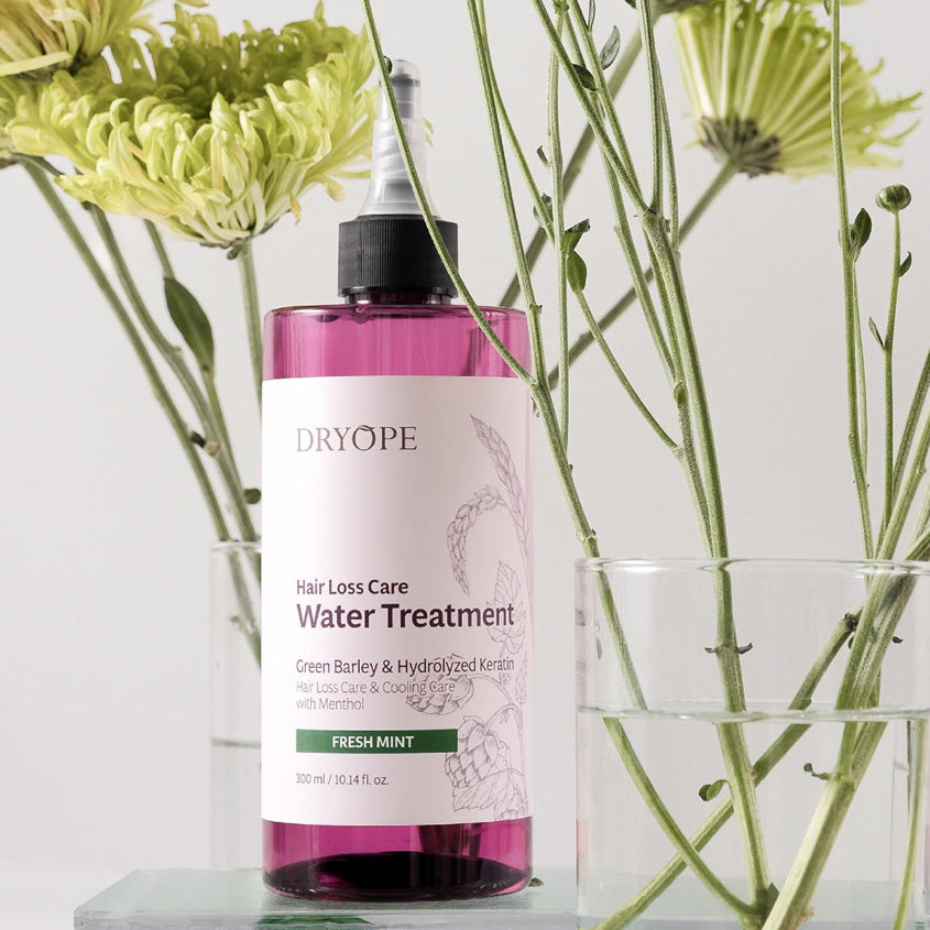 The DRYOPE Green Barley Hair Loss Care Water Treatment - Fresh Mint is an all-in-one treatment designed to address both scalp and hair health, aiming to reduce hair loss and promote a refreshed scalp.