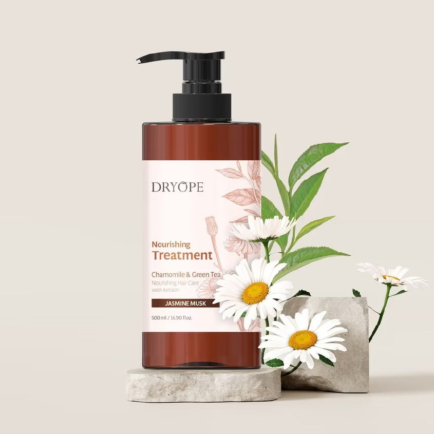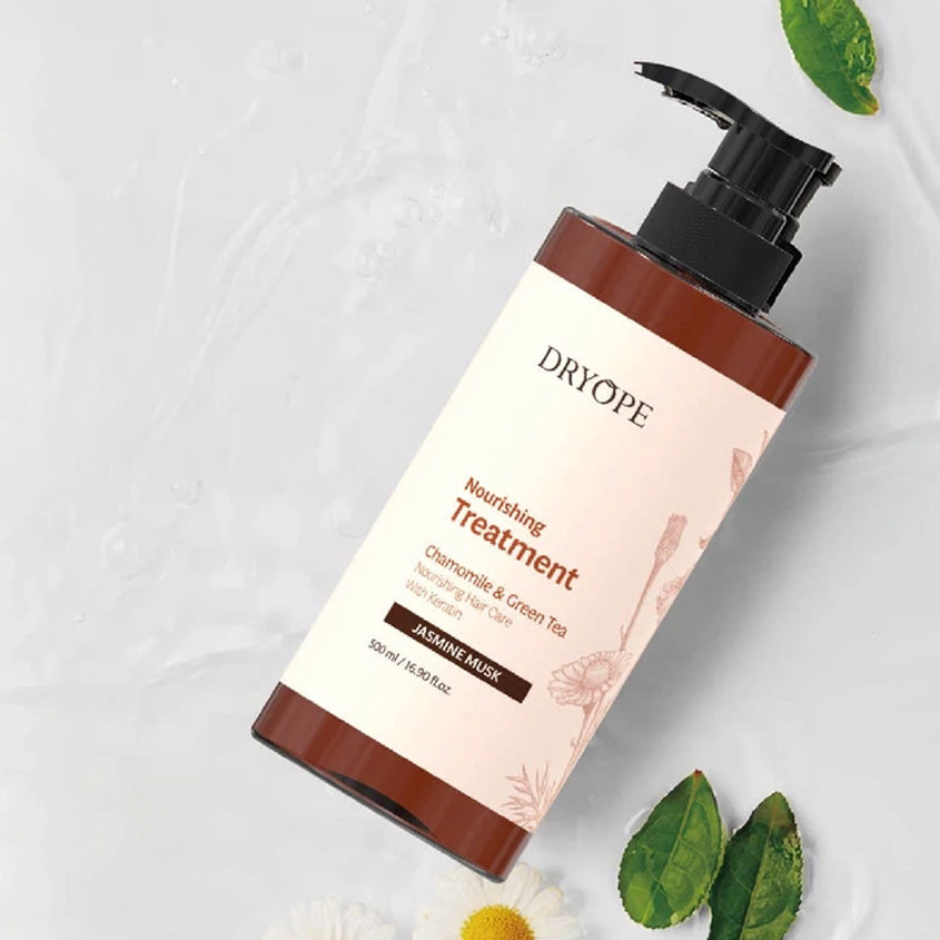 The DRYOPE Nourishing Treatment Jasmine Musk is a hair care product designed to provide deep conditioning and nourishment, leaving hair revitalized and smooth.