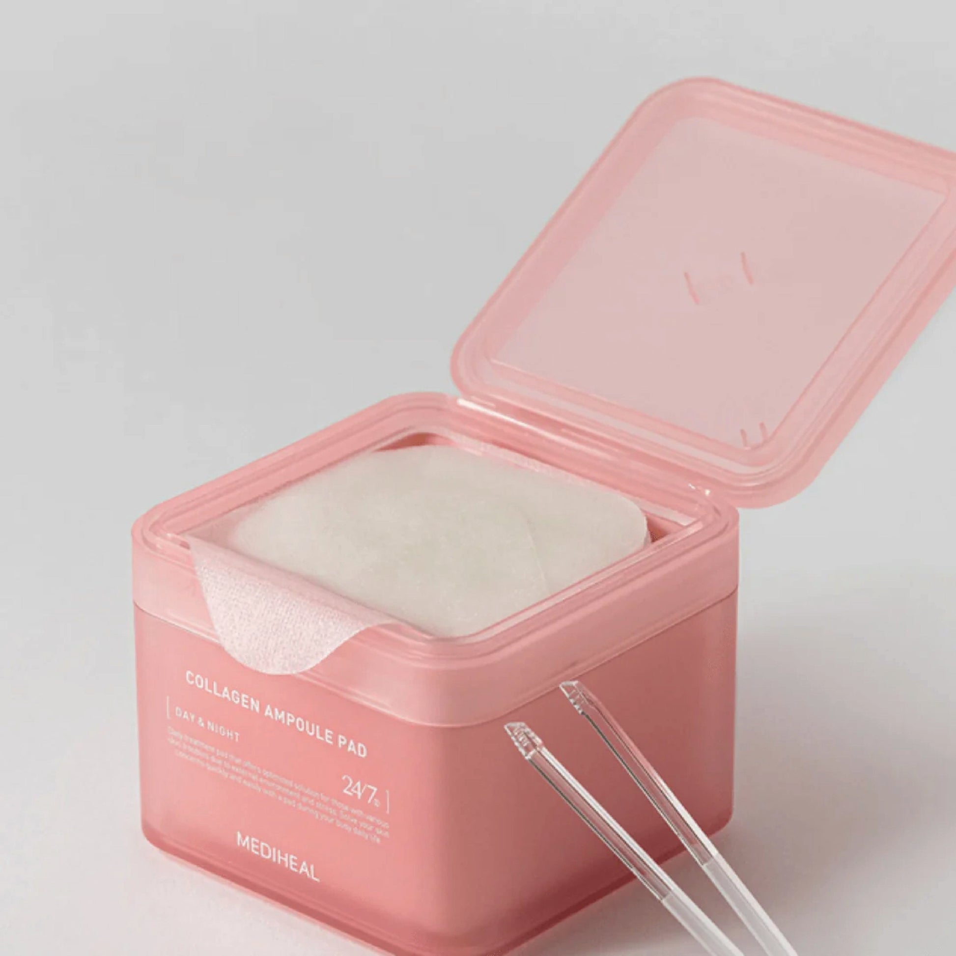 - The soft, hypoallergenic pads are infused with Mediheal's Collagen Factor™ complex to nourish and firm aging, sagging skin, enhancing the overall appearance of wrinkles and fine lines.